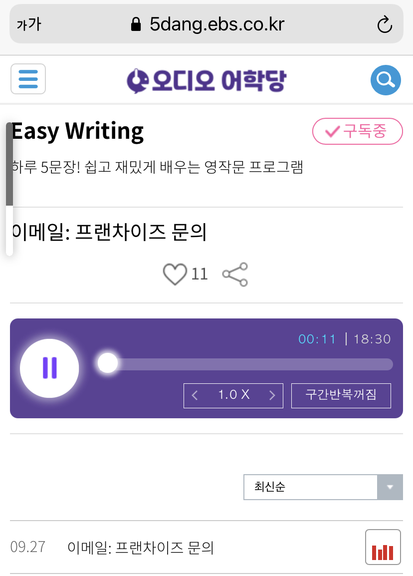출처 EBS 오디오 어학당 5dang.ebs.co.kr 이지 라이팅 Easy Writing